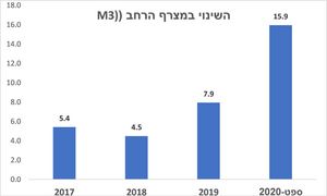 חשוב להשוות את הגידול (16% בתשעת החודשים האחרונים) בחתך הרחב של אמצעי התשלום (3M) בישראל לעומת הגידול בשנים קודמות. התיאוריה אומרת שבסופו של דבר הגידול בכסף הנזיל נוטה לזלוג גם לגידול בצריכה.