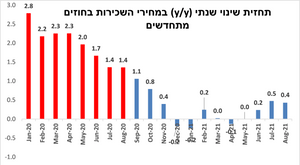 תחזית האינפלציה : 0.0% בספטמבר, 0.3% באוקטובר, 0.2%- באוקטובר ו- 0.5% שנה קדימה.
